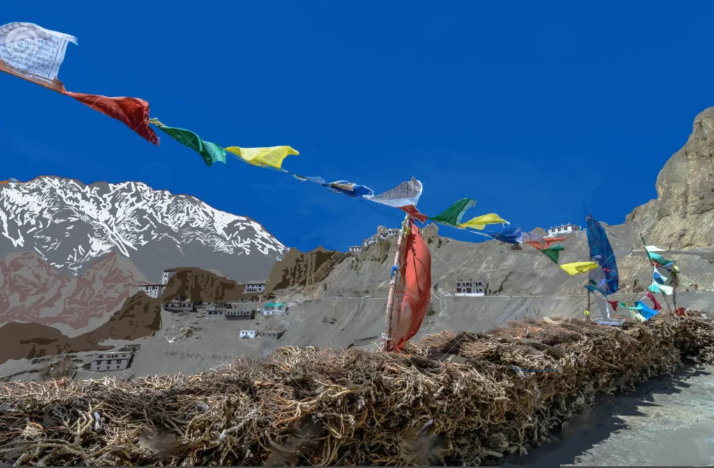 Ton hingegen ist eng mit Mantras und Gebeten verbunden. Mantras sind heilige Silben oder Worte, die wiederholt werden, um den Geist zu fokussieren und spirituelle Energie zu erzeugen. Der Klang dieser Mantras wird als kraftvoll angesehen, da er die Fähigkeit hat, den Geist zu beruhigen und spirituelle Transformation zu fördern. Ein bekanntes Beispiel ist das Mantra «Om Mani Padme Hum», das Mitgefühl und Weisheit verkörpert.